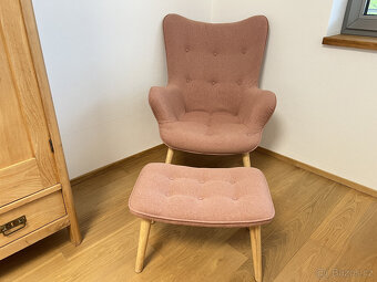 Křeslo a podnožka s dekorativním prošitím s knoflíky