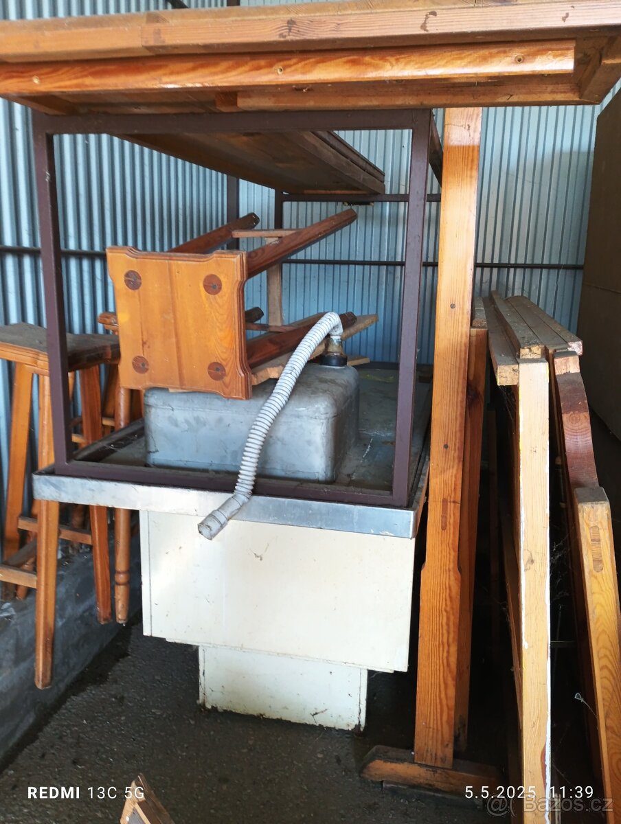 Výčep, nerezový stůl s dřezem, nábytek