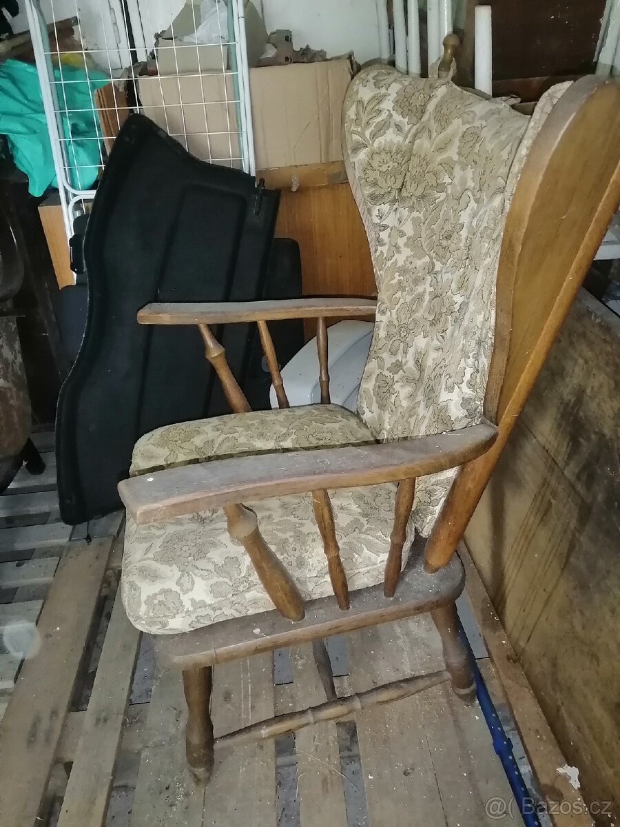 Drevene kreslo, konstrukce pevna, postare by potrebovaly poradne vycistit, jinak v poradku. Stoji par let v garazi a nemam prostor to resit.