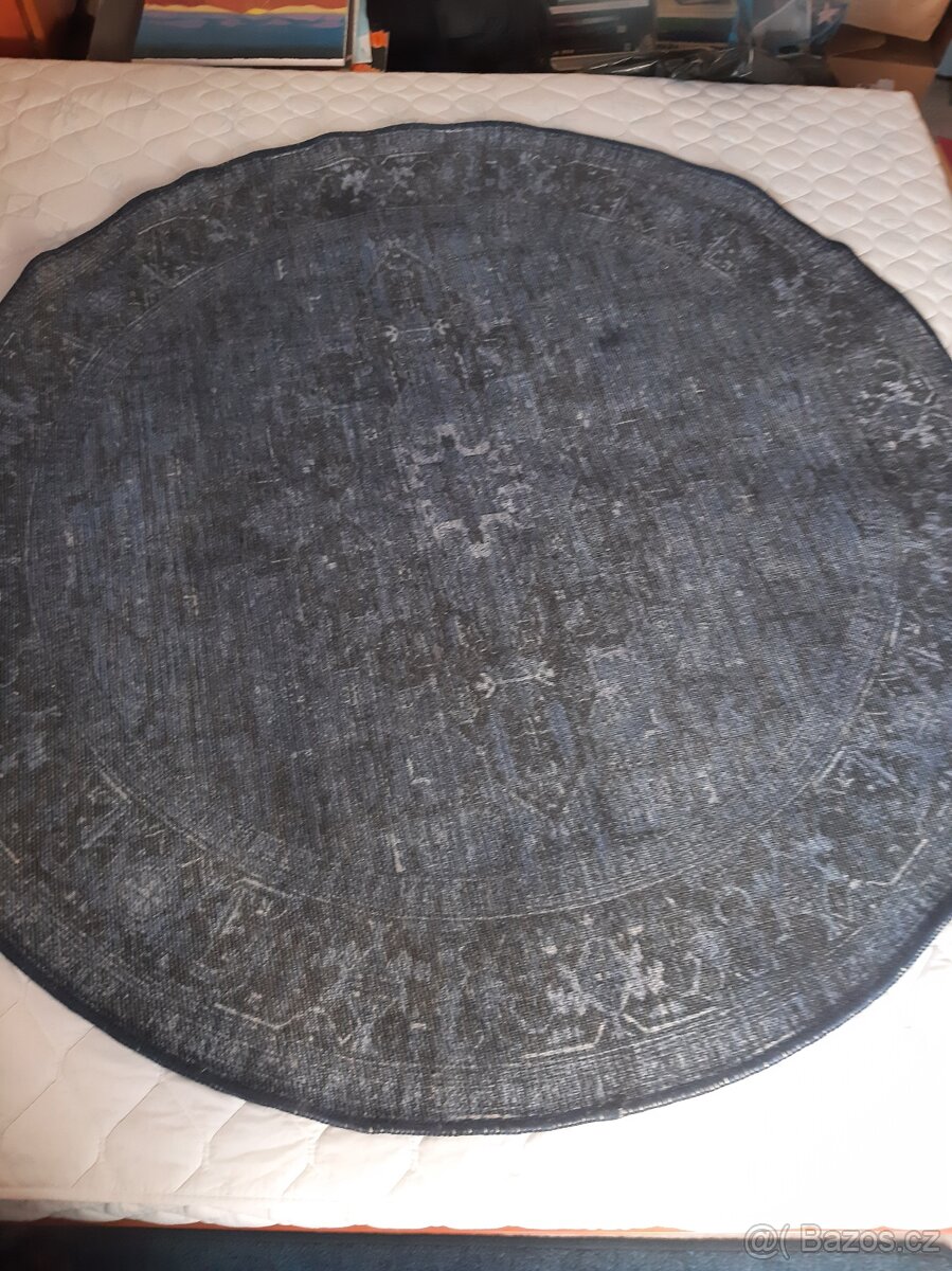 87%bavlna,13%polyester. Navy blue. Orientní styl. Lze prát v pračce. 8mm tloušťka. Jde konkrétně o tento koberec: https://www.rugvista.cz/p/azura-oriental-o-160-cm-ovalny-tmave-modra-koberec-RVD33532