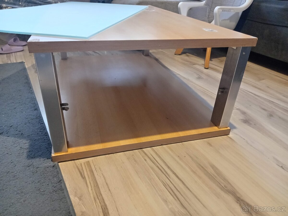Prodám starší stůl se středovým sklem. Nese známky používání viz. Foto. Na SMS neodpovídam