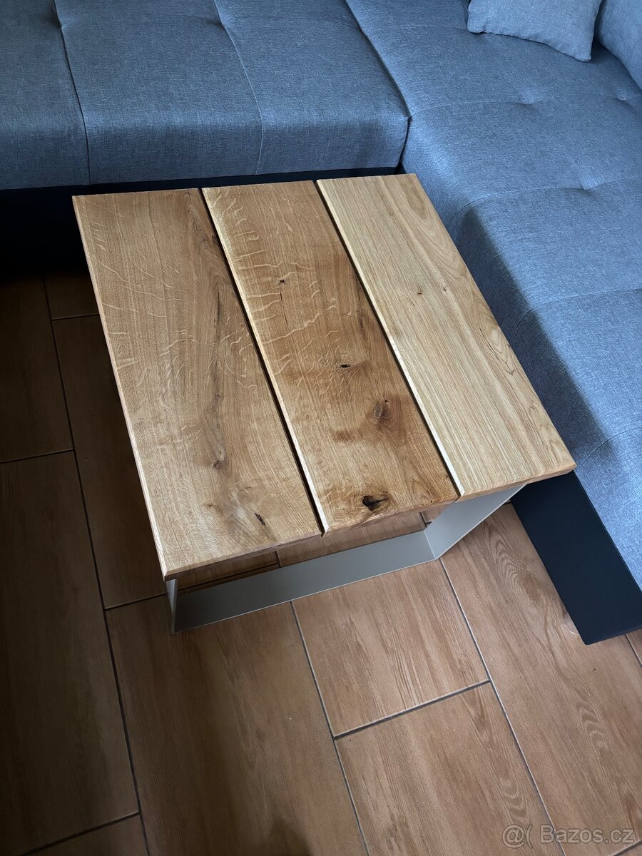 Prodám malý konferenční stolek – dubový masiv, kovová podnož