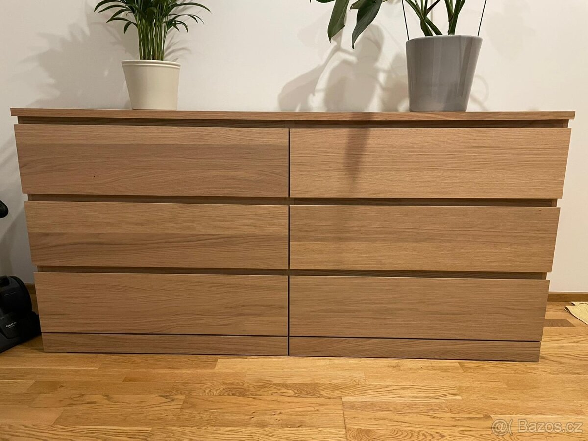 Komoda so 6 zásuvkami, ktoré sa ľahko otvárajú. Materiál: dubová dýha.