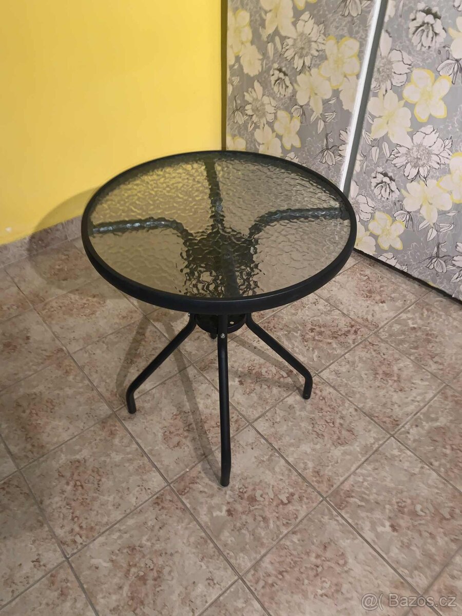 Prodám kulatý skleněný zahradní stolek s kovovou konstrukcí. Průměr desky cca 60 cm, výška kolem 70 cm. Stolek je stabilní, nevyklepaný, sklo bez viditelných škrábanců, běžné drobné známky používání. Vhodný na balkon, terasu nebo k zahradním židlím.