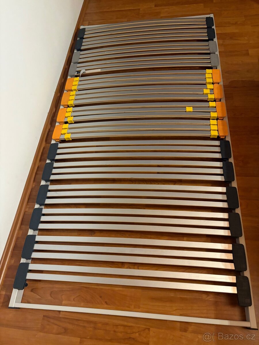Dva pevné lamelové rošty Purtex se 42 lamelami uloženými v plastových pouzdrech. V bederní části se nachází dvanáct zdvojených lamel, které slouží k nastavení tuhosti . U jednoho roštu chybí 2 lamely a to první a jedna u zdvojených lamel( přes internet lze zakoupit za cca 70 Kč jednu). Tento rošt je vhodný pro všechny matrace. Rozměr 100x200 cm. Cena z oba dohromady. Osobní odběr.