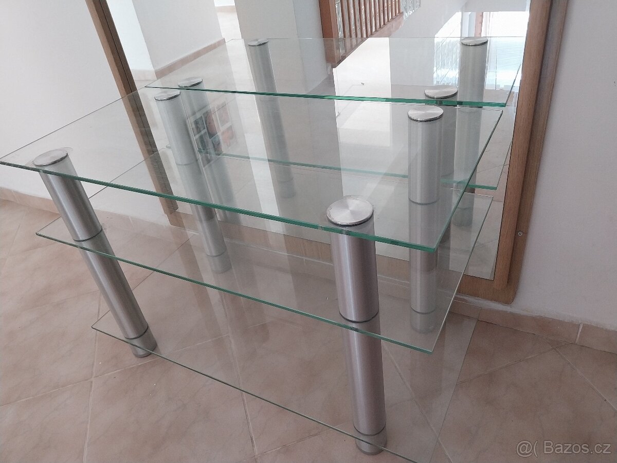 Tv stolek skleneny, chromove nohy. 85x40cm