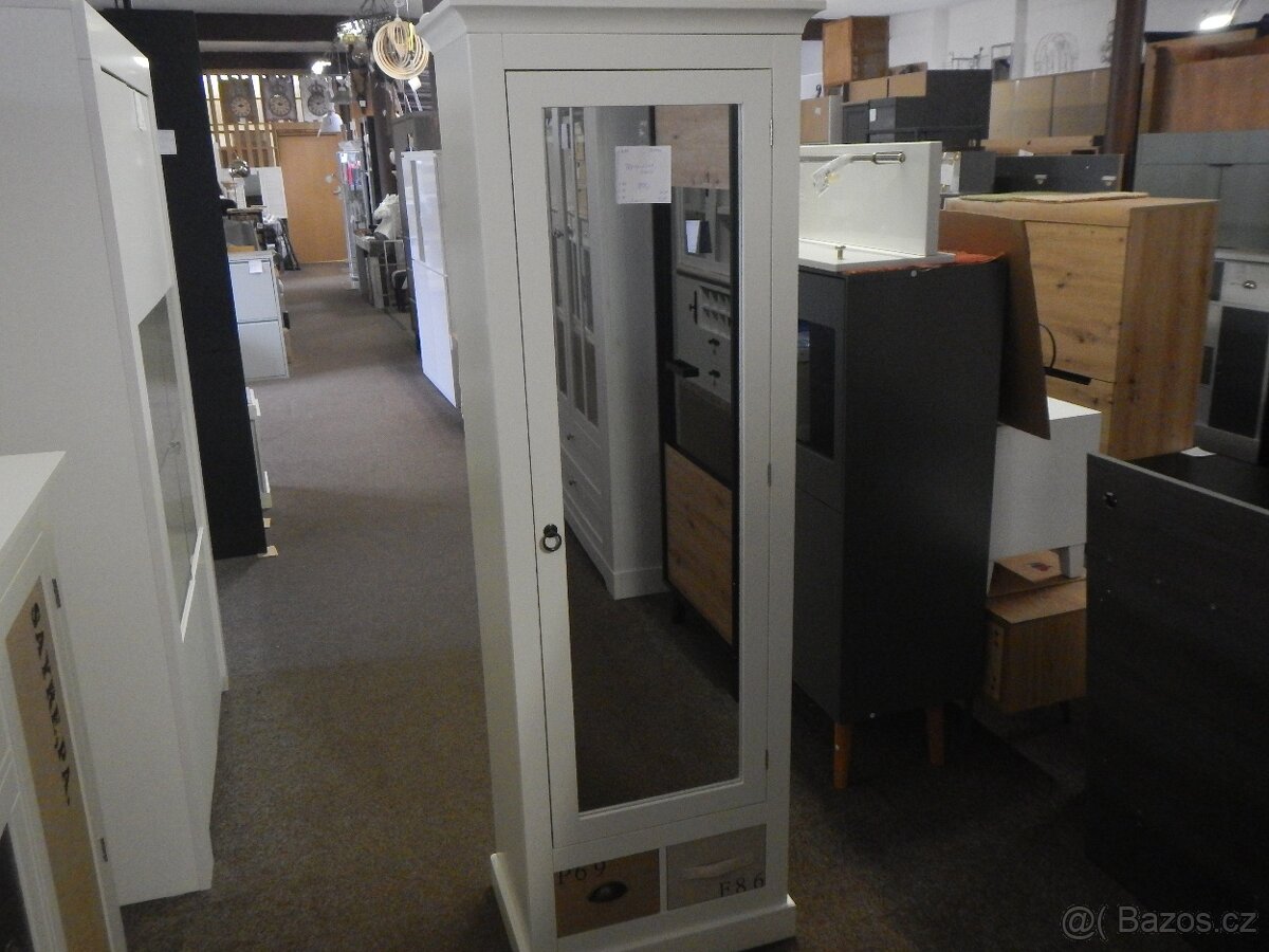 Předsíňová skříň se zrcadlem. Výška 181cm, šířka 60cm, hloubka 40cm. Materiál lamino. Nábytek je nový v původním obalu v demontu. Máme více kusů.