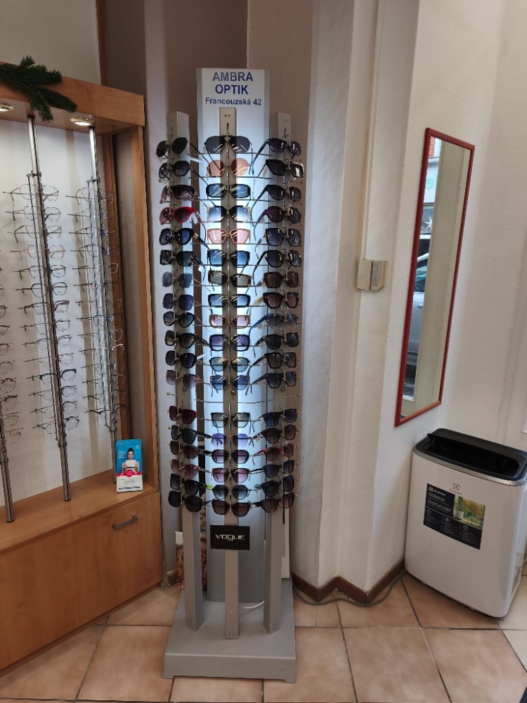 Prodám: Trojitý stojan na obruby. (brýle na stojanu nejsou součástí inzerátu)