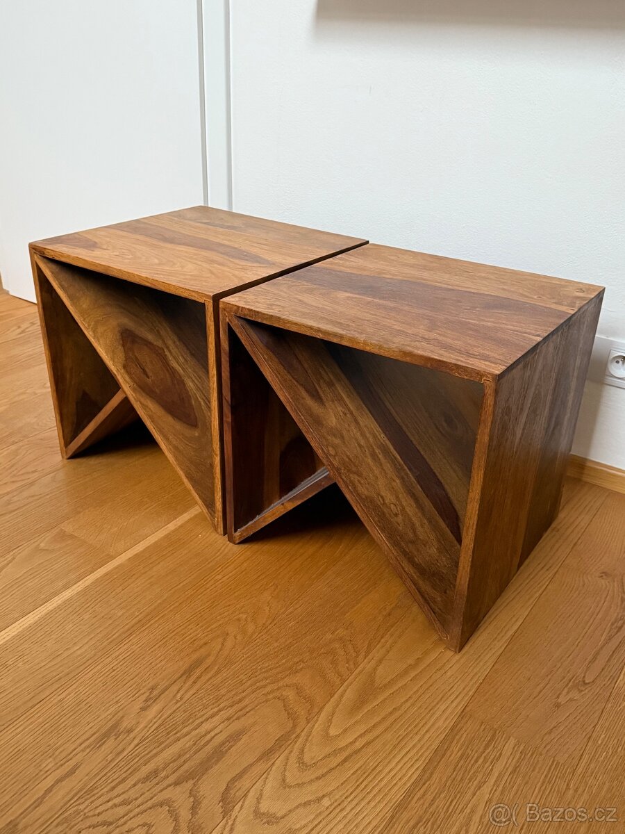 Prodám odkládací či noční stolky značky KARE design z palisandrového dřeva. Authentico regál Cube Zick Zack. Velikost 40x40cm.