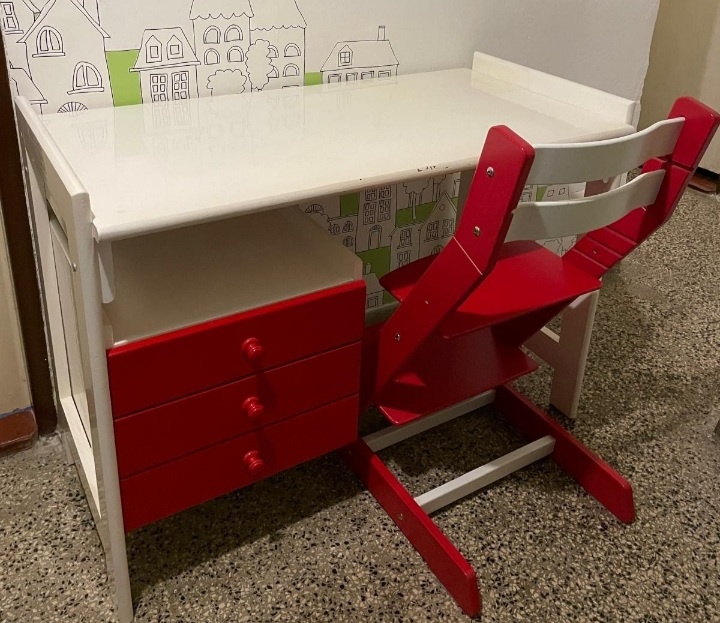 Dětský psací stůl - [29.12. 2025]Dětský psací stůl. Výška 76 cm, šířka 124,5 cm, hloubka 60 cm.