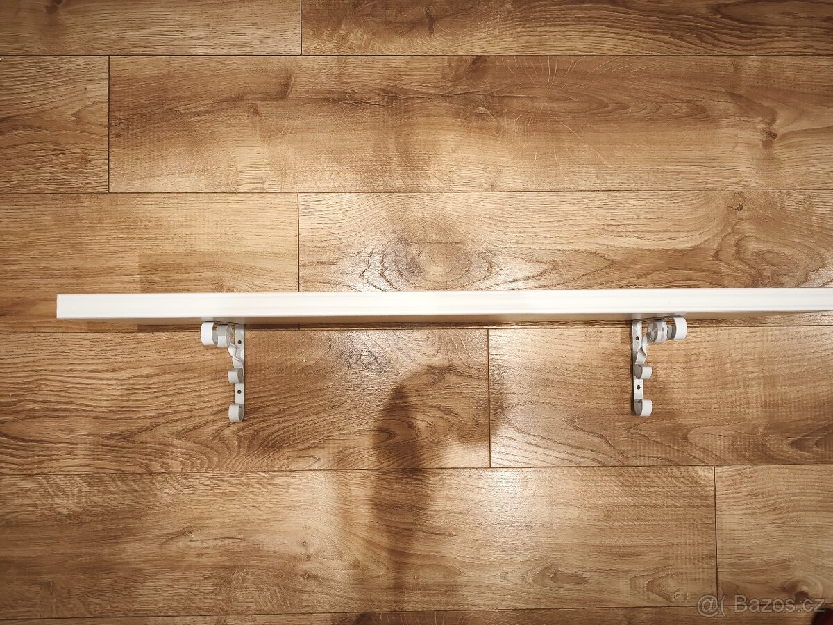 Materiál: dřevěná police, bíle lakovaná, kovové konzoly v bílé barvě.