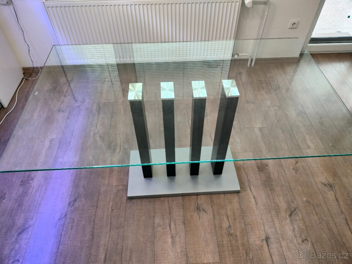 Prodám krásný skleněný stůl s pevnou kovovou konstrukcí. Rozměr d.150 x š.90 x v.75 cm.