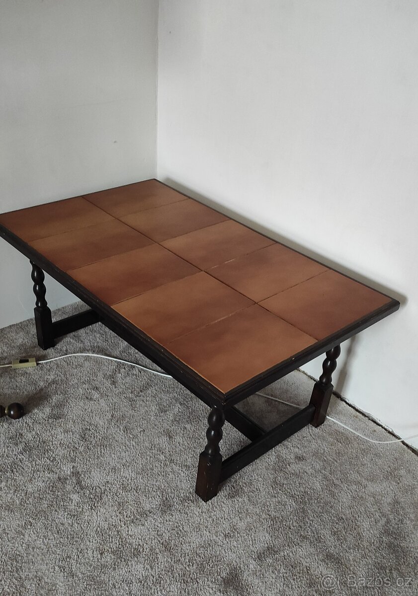 Kachličkový stůl - [28.11. 2025]Stůl obložený na hodní desce kachličkami. Ideální třeba na chalupu - snadno se udržuje. Může sloužit i jako konferenční nebo nízký kuchyňský. Rozměry a nedostatky na fotkách.
