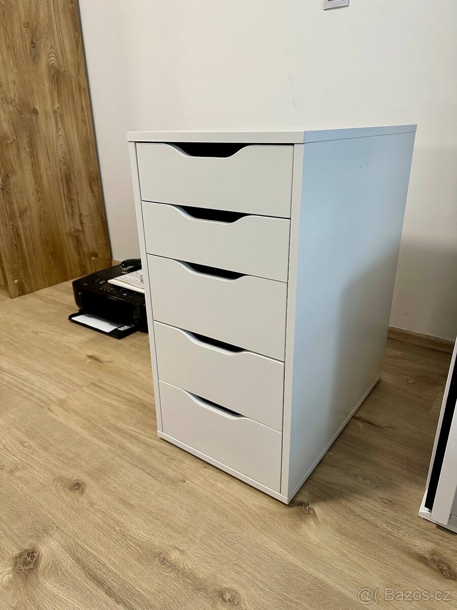 Prodám bílý zásuvkový kontejner v moderním, čistém designu, který je vhodný ke kancelářskému stolu, nebo jako komoda do pracovny.