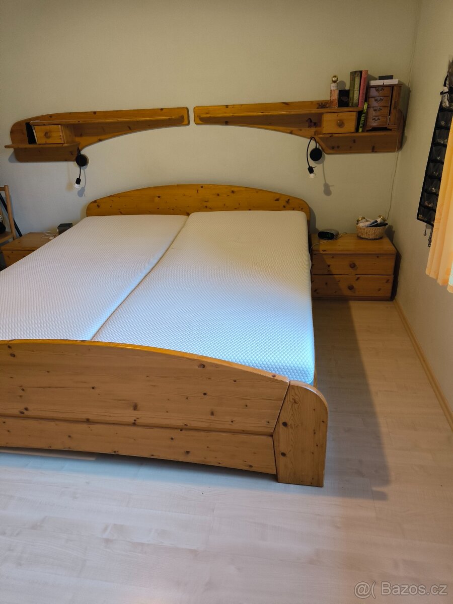 Manželské postele - masív smrk - včetně nočních stolků polic