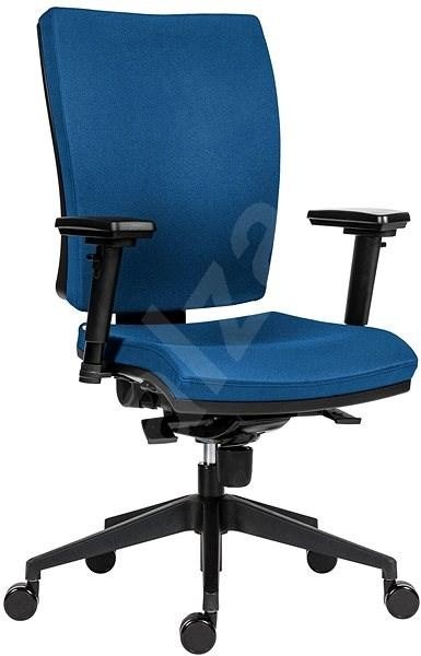 Kancelářská židle - otočná se synchronní mechanikou, možnost aretace opěráku, nosnost 130 kg, anatomicky tvarovaný sedák s nastavitelností hloubky a výšky, opěrák s nastavitelnou výškou a sklonem, područky s možností nastavení posunu dopředu / dozadu, výšky, rotace vrchní části, plastová kolečka, plastová konstrukce, materiál potahu textil, materiál nohy plast, šířka 63 cm, hmotnost 15,4 kg