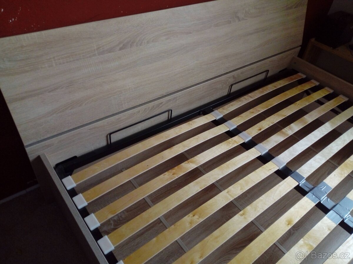 Prodám manželskou postel o rozměrech 180x200cm s úložným prostorem. Vada na roštech, lamely jsou v pořádku (až na jednu), špatné jsou plastové spojky. Možno dokoupit. Jinak je postel v bezvadném stavu. Je rozložená a nachystaná k odvozu.