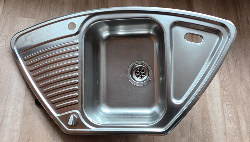 Prodám použitý, ale nepoškozený rohový dřez Blanco, chrom, Blancoviva 9E18/10, made in Germany. Včetně vodovodní baterie, páková, otočná, celochromovaná. Rozměry dřezu: nejšiřší rozměr 93 cm, dole šířka 40 cm, hloubka 51,5 cm, po stranách 49 cm. Aktuální cena v prodejnách cca 4400 Kč, prodám za 2790 Kč. Osobně, vyzvednutí Praha Letňany