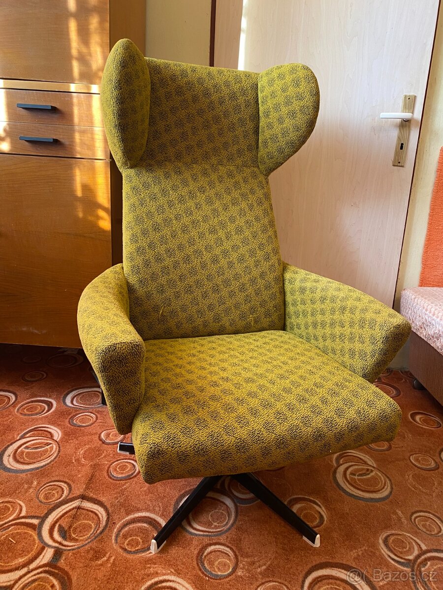 Točící křeslo tzv. ušák z 60. let minulého století z Československa.