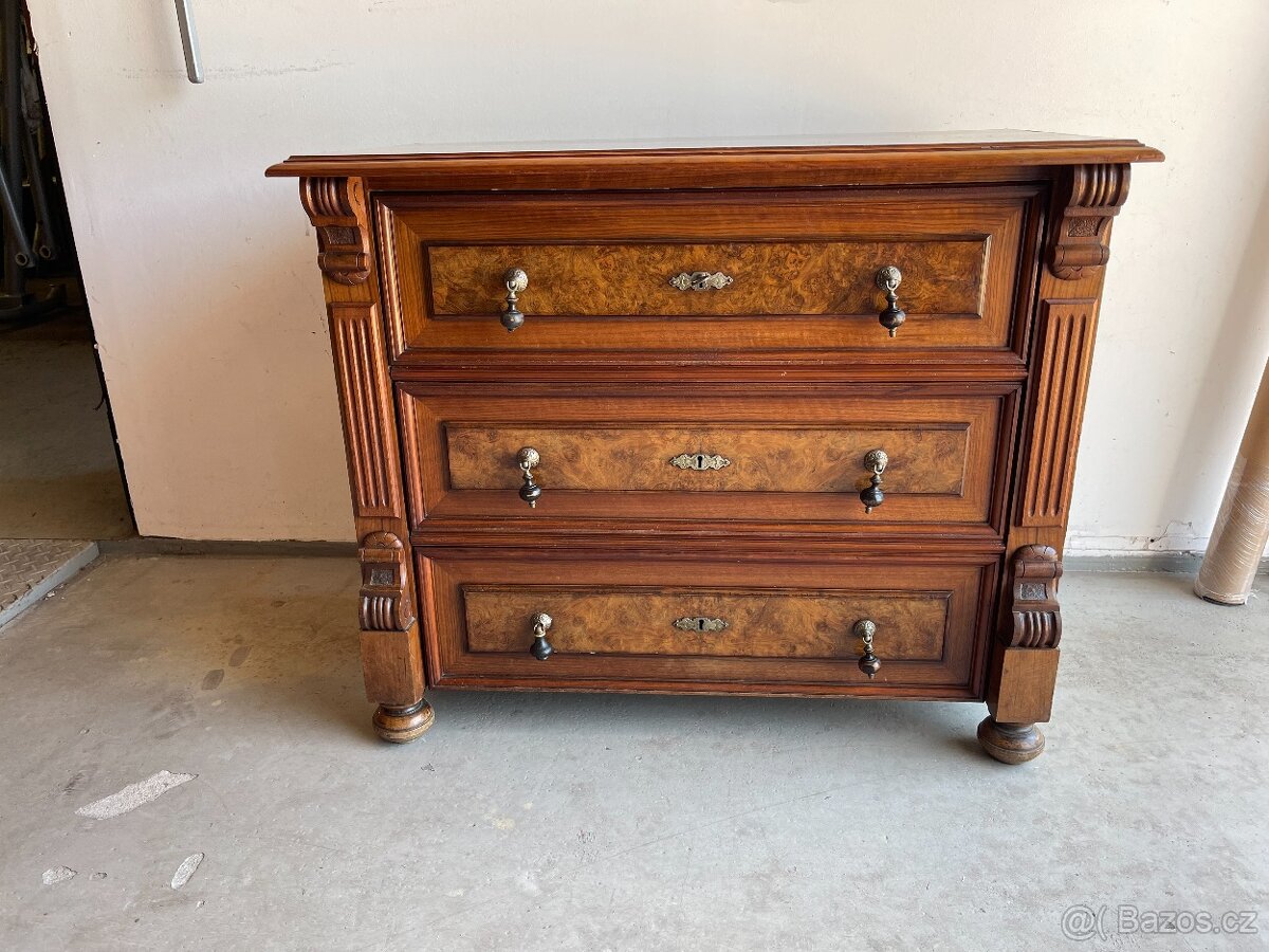 Prodám luxusní starožitnou komodu z období historismu (konec 19. stol.). Velmi zachovalý kousek vhodný do stylového interiéru.