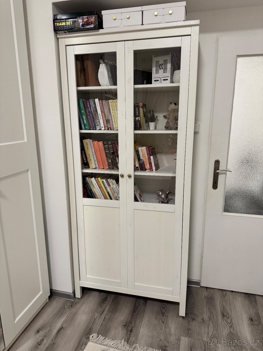 Rozměry: V 197 cm, Š 90 cm, H 37 cm. V současnosti jsou namontované úchytky zlaté barvy, v případě zájmu je mohu vyměnit zpět za originální.