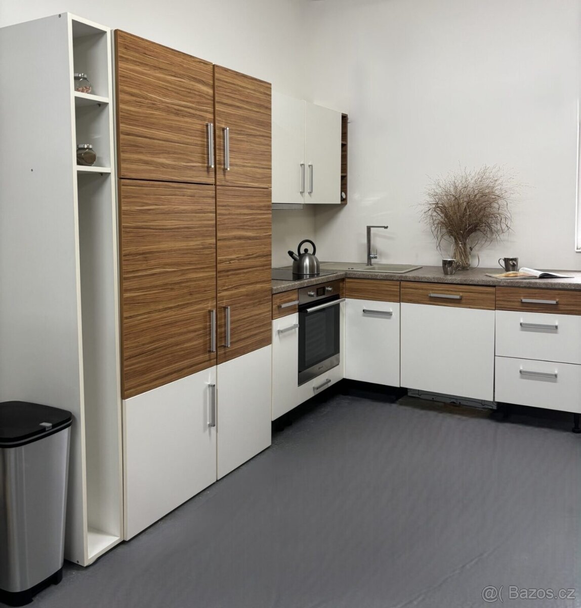 ● kombinace bílých dvířek a dekoru ořechového dřeva