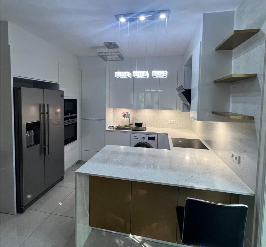 Kuchyně s ostrůvkem, kamennou deskou a spotřebiči,5708 - [22.12. 2025]Nabízím k prodeji moderní kuchyňskou linku s ostrůvkem, kamennou deskou a vestavěnými spotřebiči.
