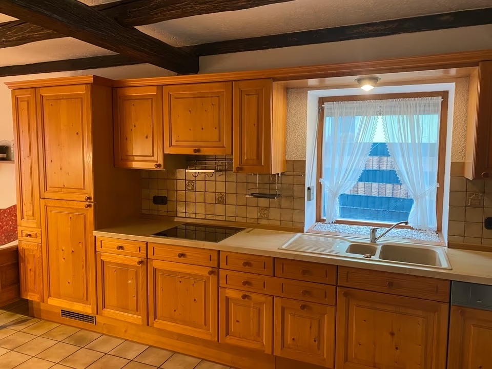 ● celodřevěná kuchyně s výraznou rustikální kresbou dřeva