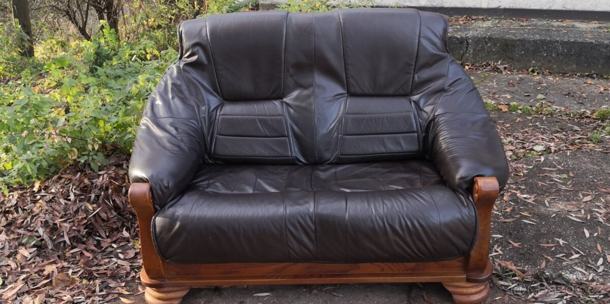 Kožená sedací souprava(dvojsedačka) s masivním dřevem