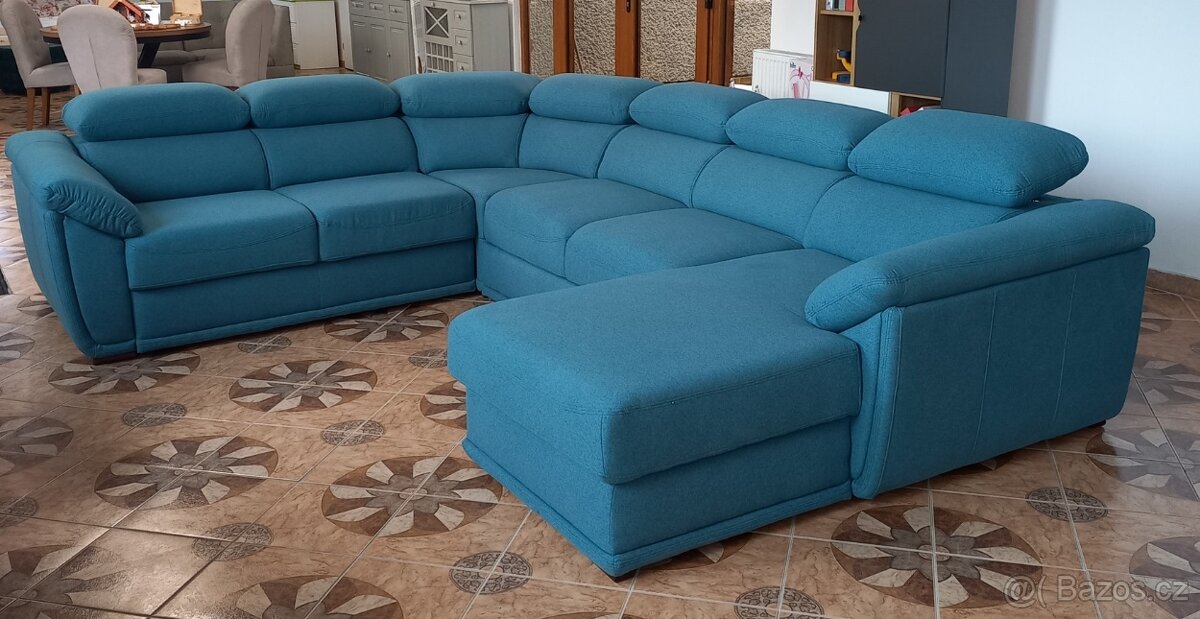 Materiál potahové látky u rohové sedací soupravy kvalitní potahové látky.