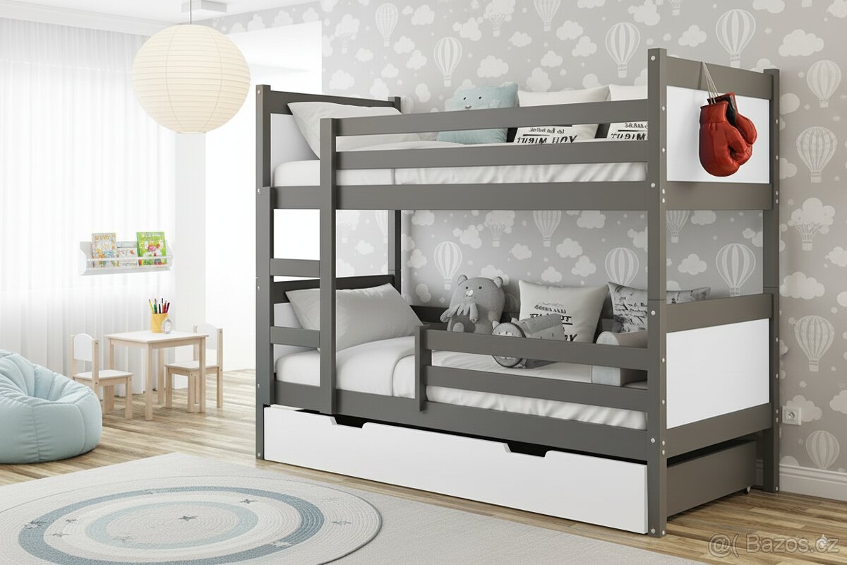 NOVÁ Patrová postel palanda grafit MASIV + 2x MATRACE