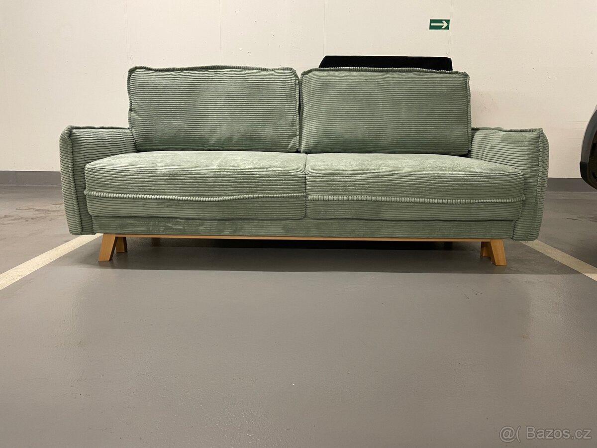 Manšestrová, rozkládací/s úložným prostorem, světle zelená, vhodné pro mazlíčky, trojmístná, šířka 218 cm