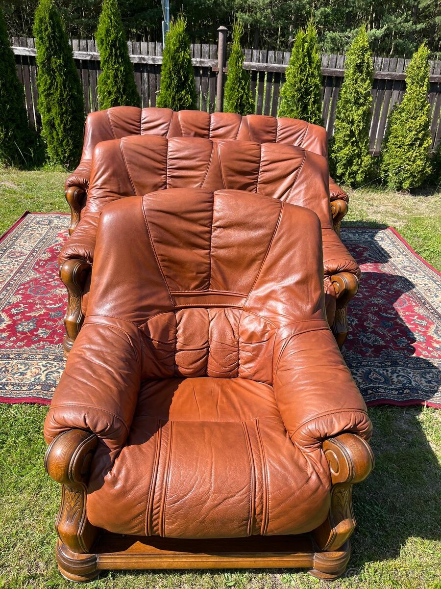 Dubová rustikální kožená sedačka, 3788 - [22.12. 2025]Kožená sedací souprava 3+2+1.