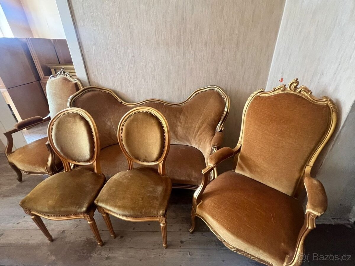 Starožitnosti - [22.12. 2025]Prodam starožitný nábytek minimálně 100let starý viz foto,bohužel žádné štítky jeden rozkládací stůl 120x110 plus rozložení, jeden kulatý stůl 60cm,dva krát křeslo s područkou,4 krát židle, jeden krát pohovka 170x60 cena pevná všechno je ještě na pr ...