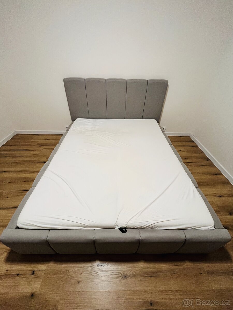 Prodám elegantní manželskou postel 160×200 cm ve světle šedé barvě.