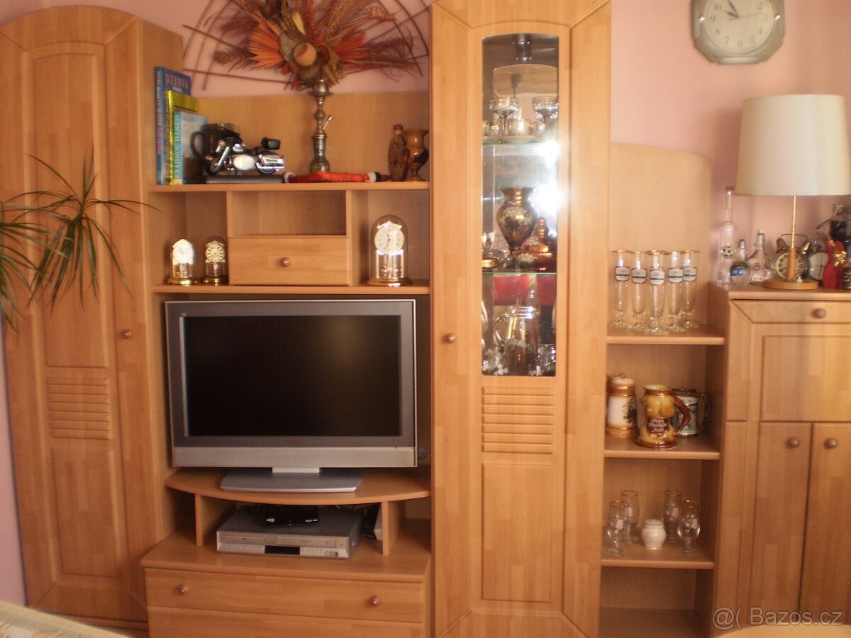 nabízím obývací stěnu - velice pěkná praktická stěna, úložný prostor, vitrína - s osvětlením, míry jsou uvedeny na fotu, částečně již vyklizena, v případě zájmu ihned vyklidím, možno vidět