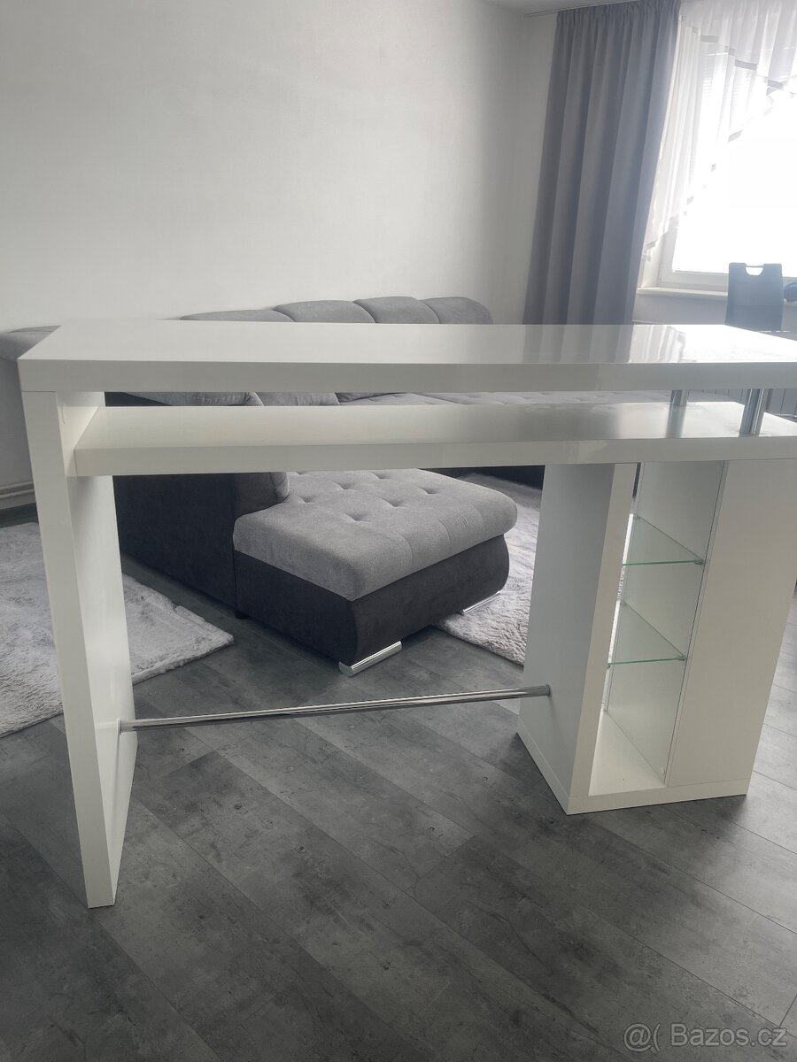 Barový stůl v bílém lesku. Délka 157cm, šířka 55cm. Pouze osobní odběr!