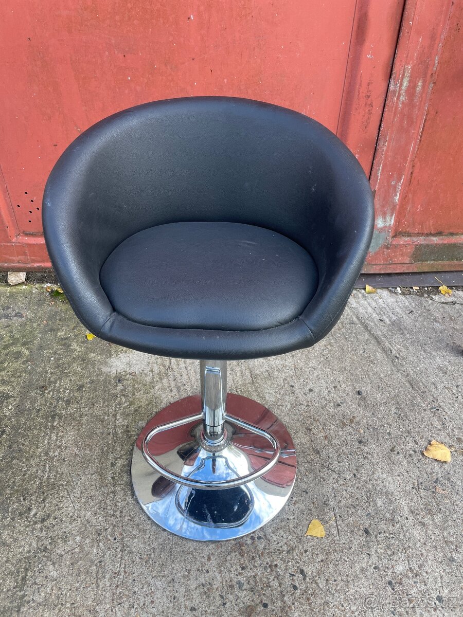 Koženková točící barová židle, nastavitelná výška, stupínek na nohy. Nerezová konstrukce.