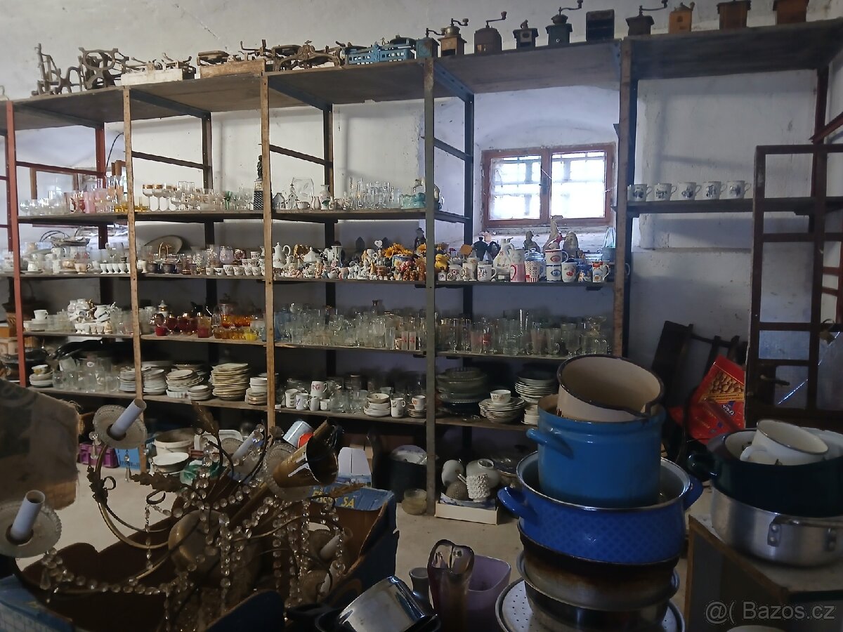 Nádobí, keramika, skleničky, hrnce, džbány, dárkové a upomínkové předměty. Překrásné čajové a kávové sady, které již v obchodech nekoupíte. Petrolejky, sošky, hmoždíře, historické váhy, samovary a mnoho dalšího. Vybavení kuchyně, popřípadě chalupy. Přijeďte si vybrat. Nejlépe při odběru většího množství. Kontakt telefonicky, děkuji.