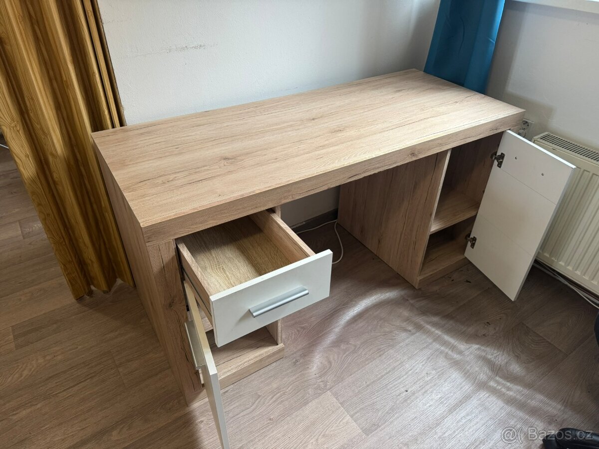Prodám pracovní stůl o rozměrech 75x140x70 cm (VxŠxH). Jeden šuplík + dvě otočná křídla. Dýhovaný, nepoškrábaný jen se nedovírá šuplík kvůli delší liště, jde seříznout. Odvoz vlastní. Komunikovat jen přes email tomas.dlask@email.cz, adresu zašlu po domluvě.