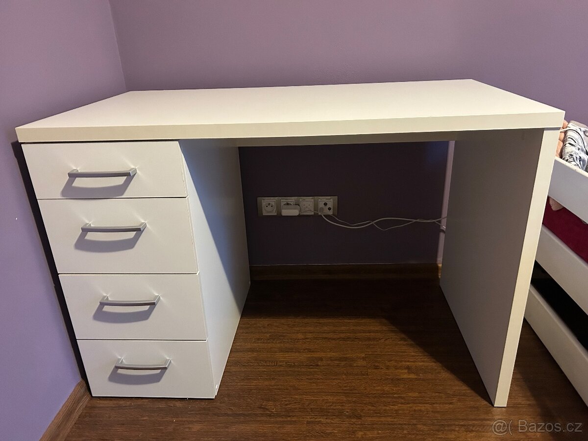 Bílý psací stůl s šuflaty. Stůj je neponičený.