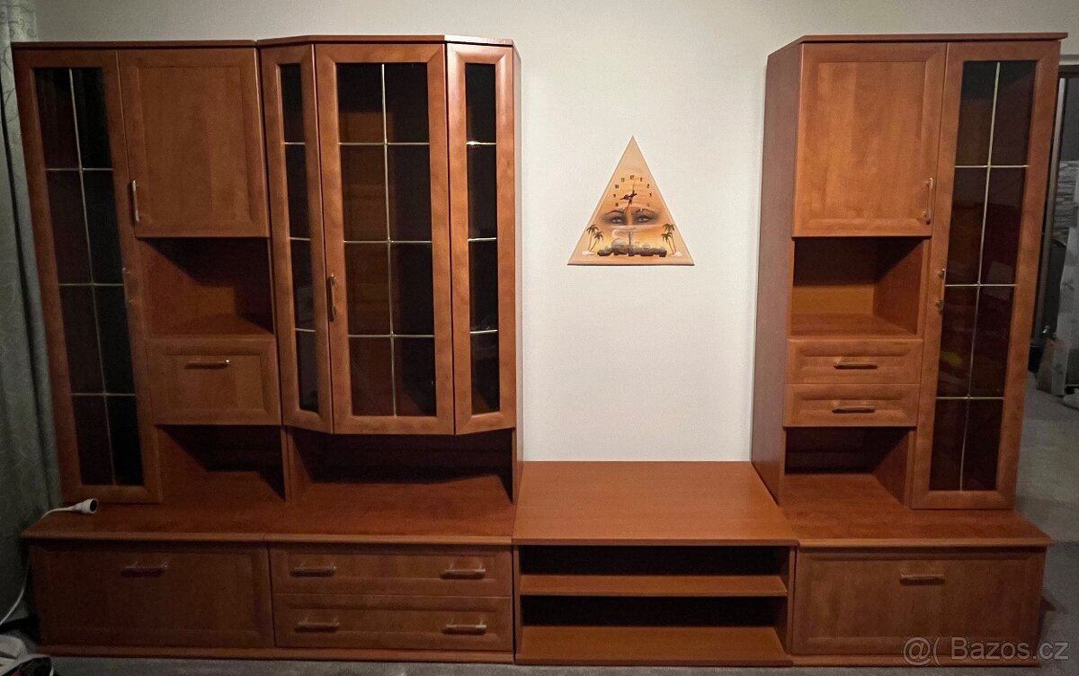 Prodám obývací stěnu složenou ze tří částí. Mezi to přidán stolek pod televizi. Možno vzít i samostatně stěnu bez stolku. Šířka jedné části stěny 80 cm. Cena dohromady 5.000,-, při rychlém jednání možná sleva.