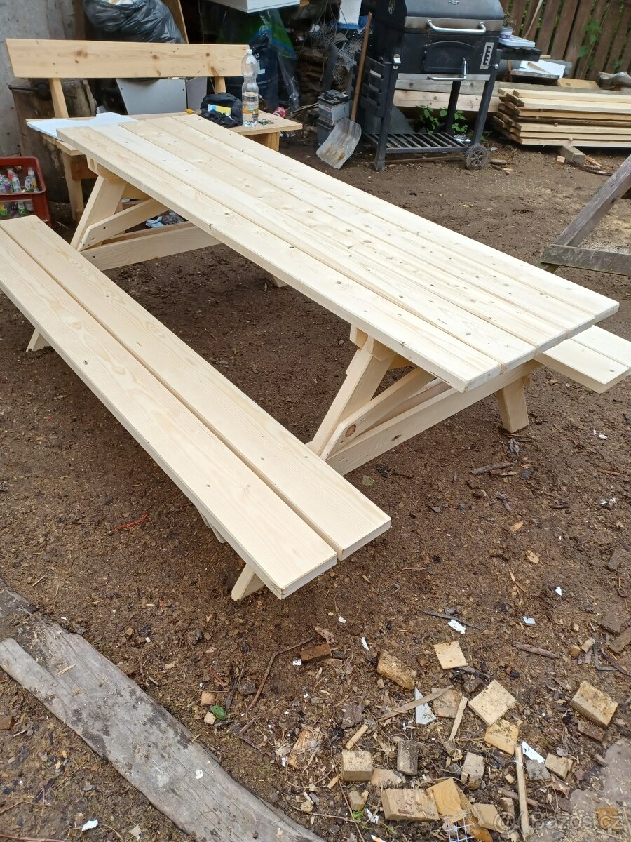 Dobrý den, prodám nový zahradní set v délce 200cm zhotoven z masivu síla prken na stole 3cm na sedácích 4cm cena 4000kc nebo délka 150cm cena 3500kc