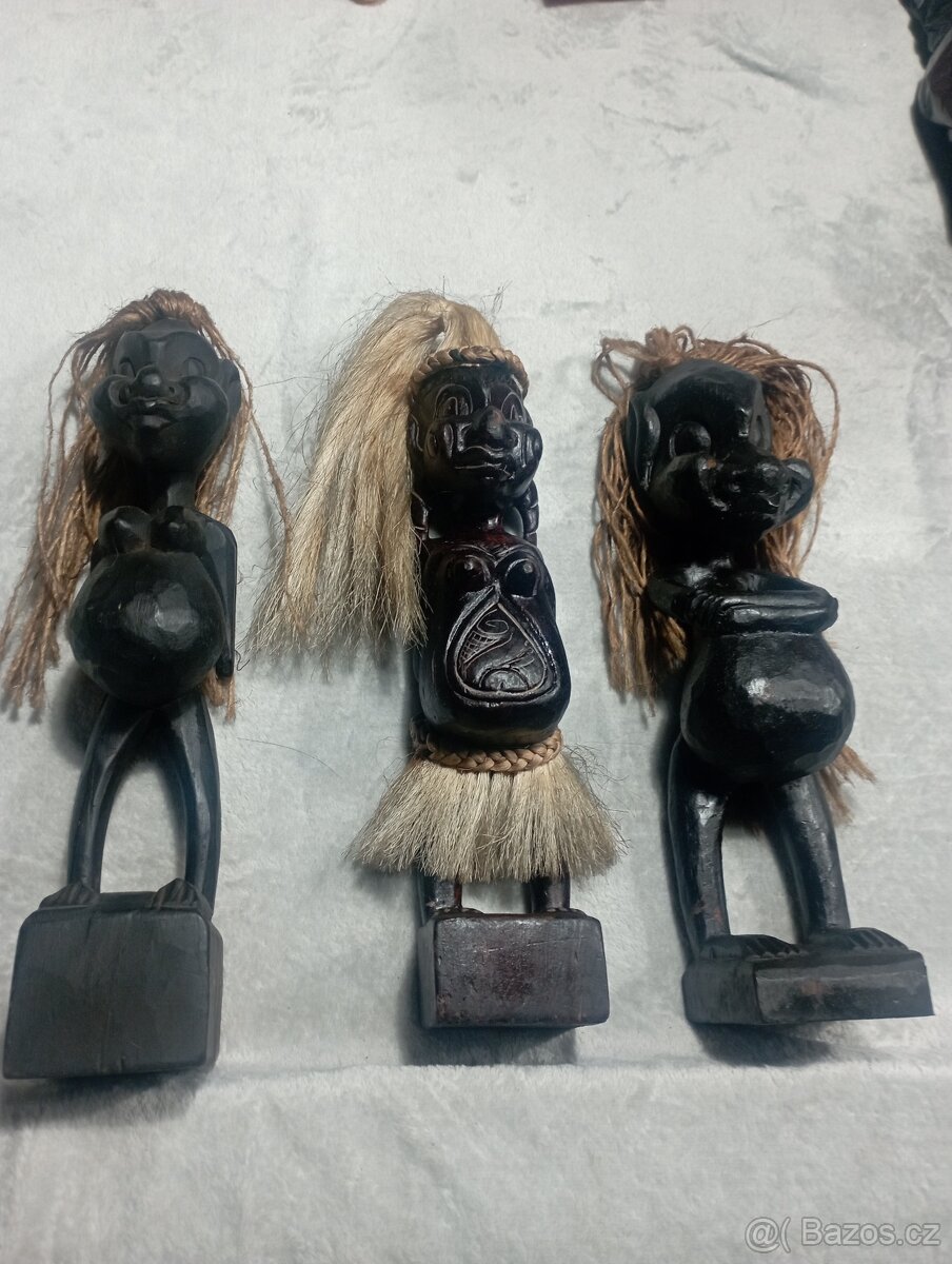 Nabízím tyto tři dřevěné sošky.Dekorace těhotní afričané.Stav viz foto.Cena za kus 150 Kč za vše dohromady sleva na 330 Kč