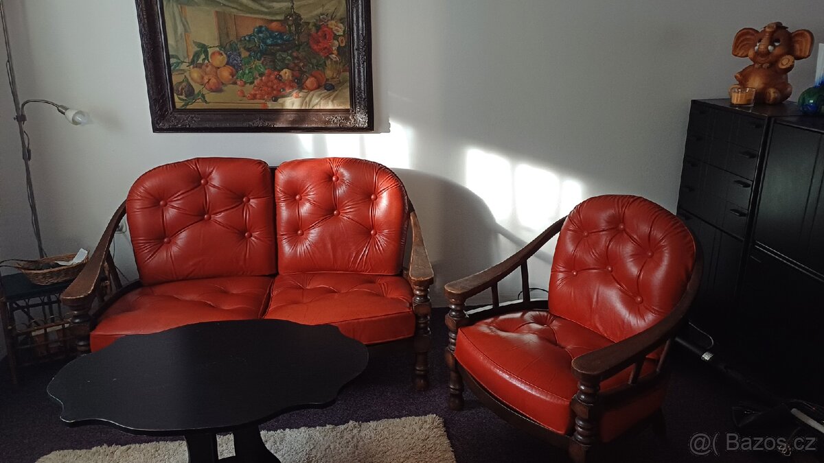 Po menší renovaci dřevěných opěrek a po vyčištění a ošetření kůže,to bude opět pěkná sedací souprava.