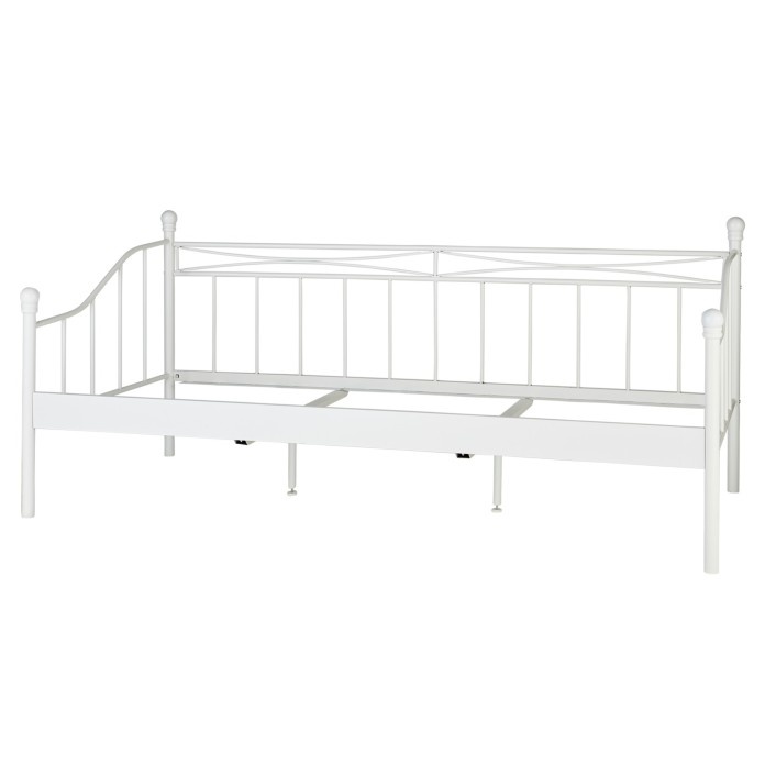 Kovová jednolůžková pohovka/postel. Lze použít pro každodenní spaní. Bez matrace a roštu. Velmi dobrý stav. Rozkládací - dá se jednoduše stěhovat. Pro matraci 90x200 cm.