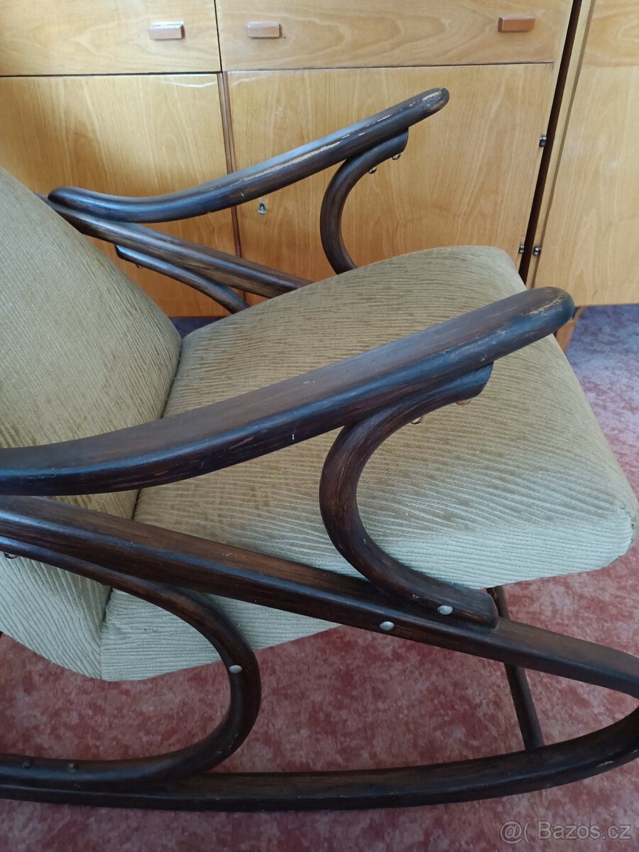 Prodám houpací křeslo firmy TON. Křeslo je pevné,již renovované, nevysezeno. Potah je možno přečistit.