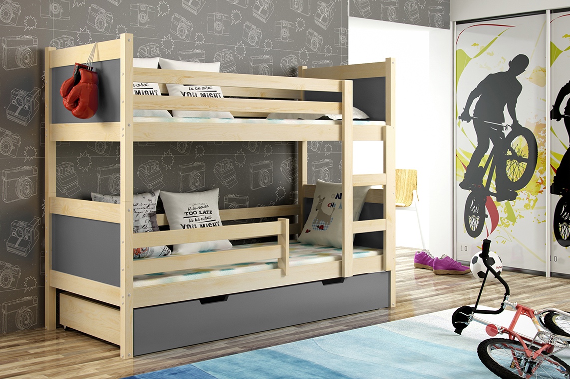 NOVÁ Patrová postel palanda borovice grafit MASIV