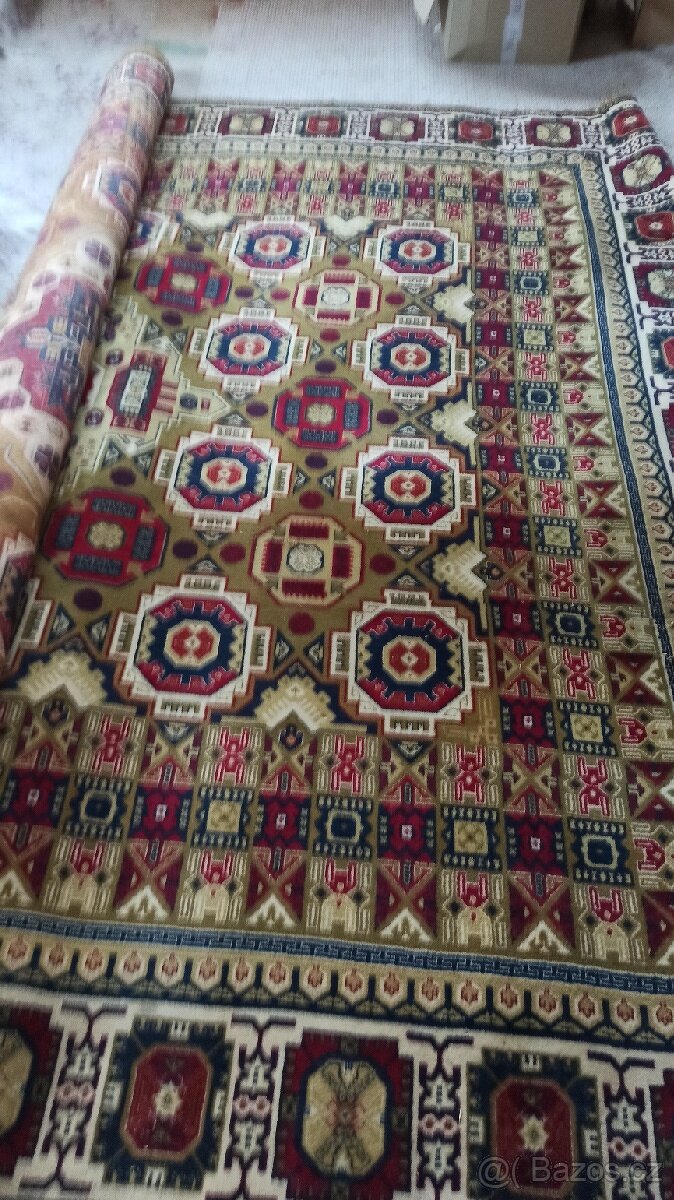 Prodám mongolský vlněný koberec, rozměr 3x5m. V pravém rohu trochu vydřená část chlupu koberce, viz foto.Jde opravit za par korun. Jinak v pořádku. Odběr Senohraby. Tel. 733118938
