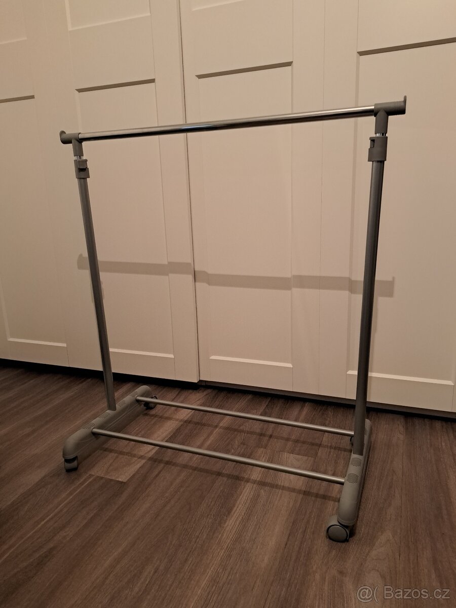 Prodám nevyužitý pojízdný šatní stojan. Štendr je výškově nastavitelný, rozměry viz foto.